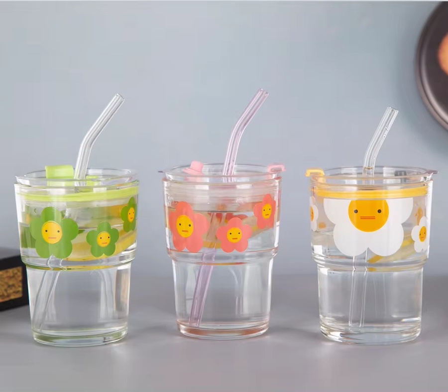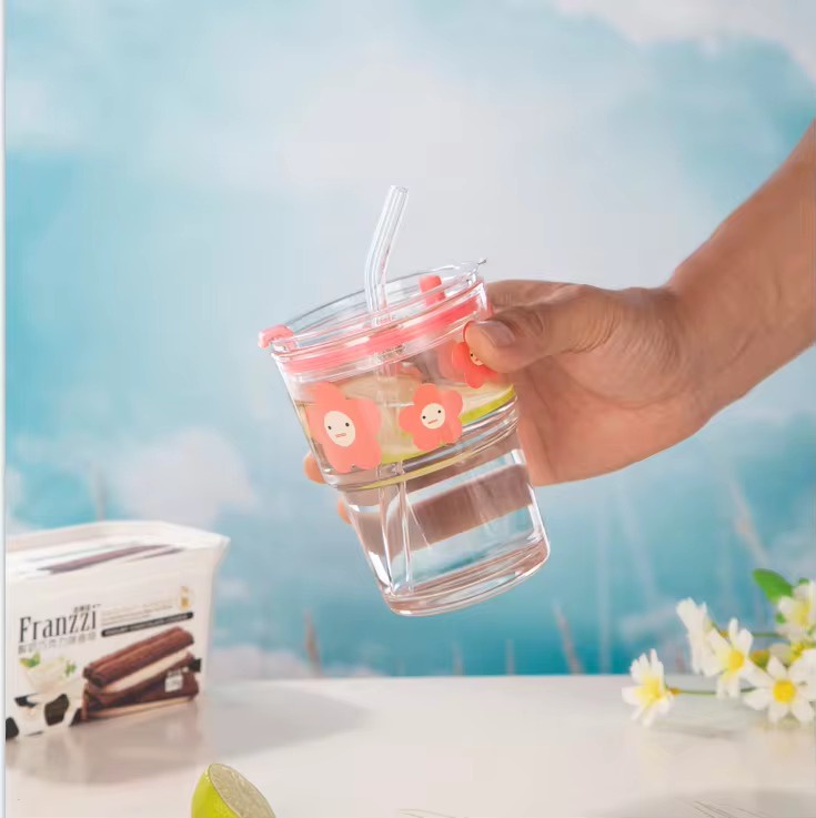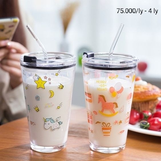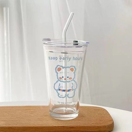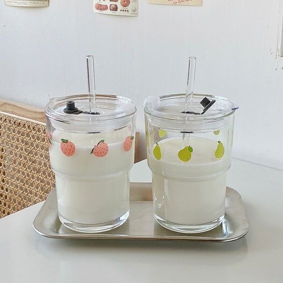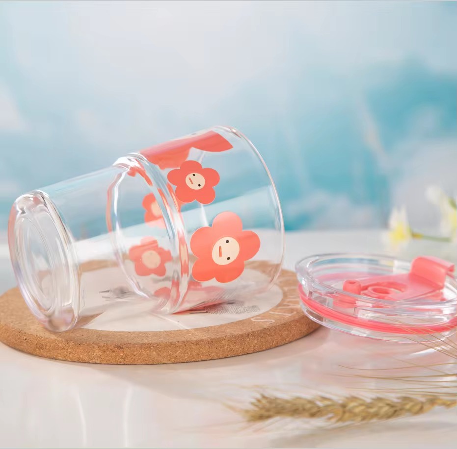 كوب زجاجي مع غطاء وشفاطه من الزجاج